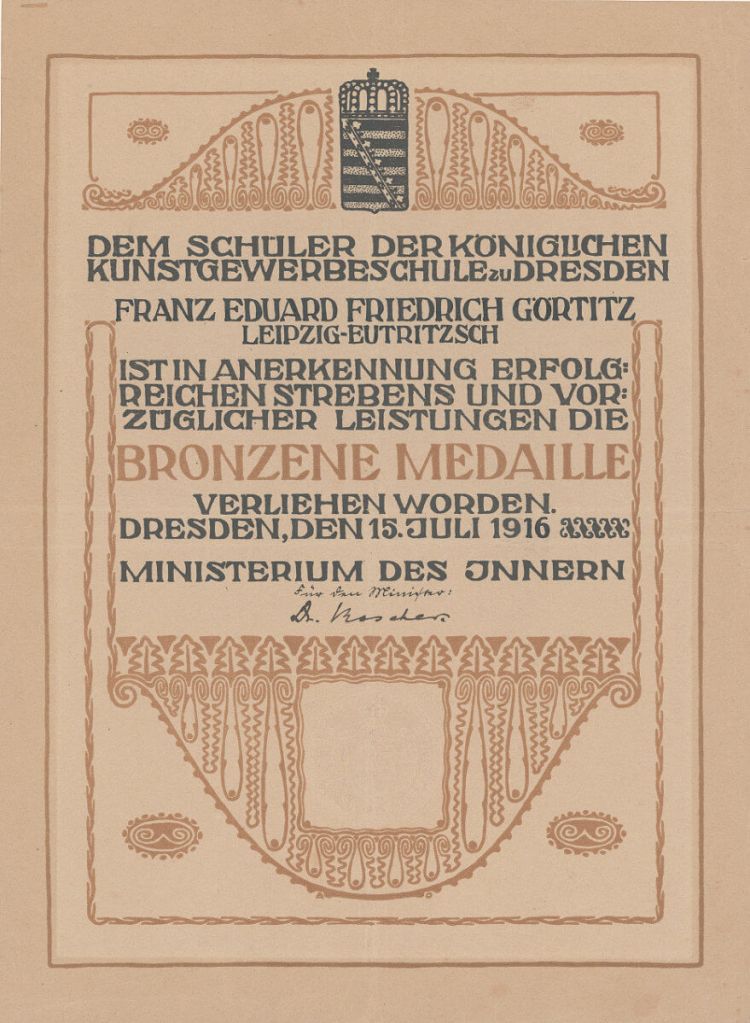 Juli 1916: Das Ministerium des Inneren zeichnet Görtitz mit einer Bronzenen Medaille aus.